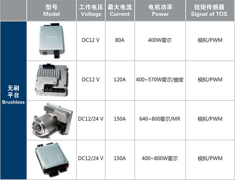 4.产品平台丰富:无刷和有刷电机具有相应控制器对接,电机功率从150W——800W均有配套控制器。
